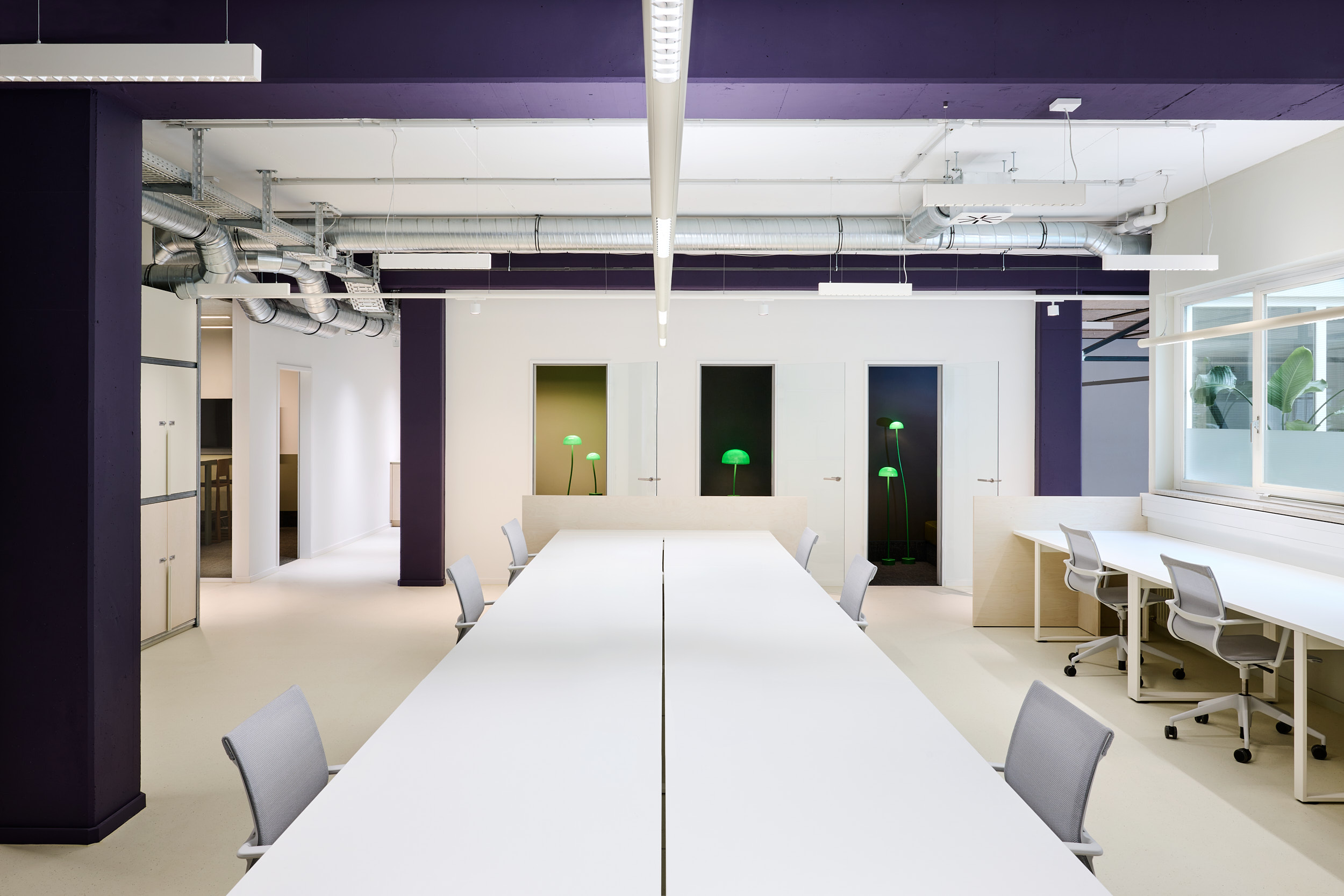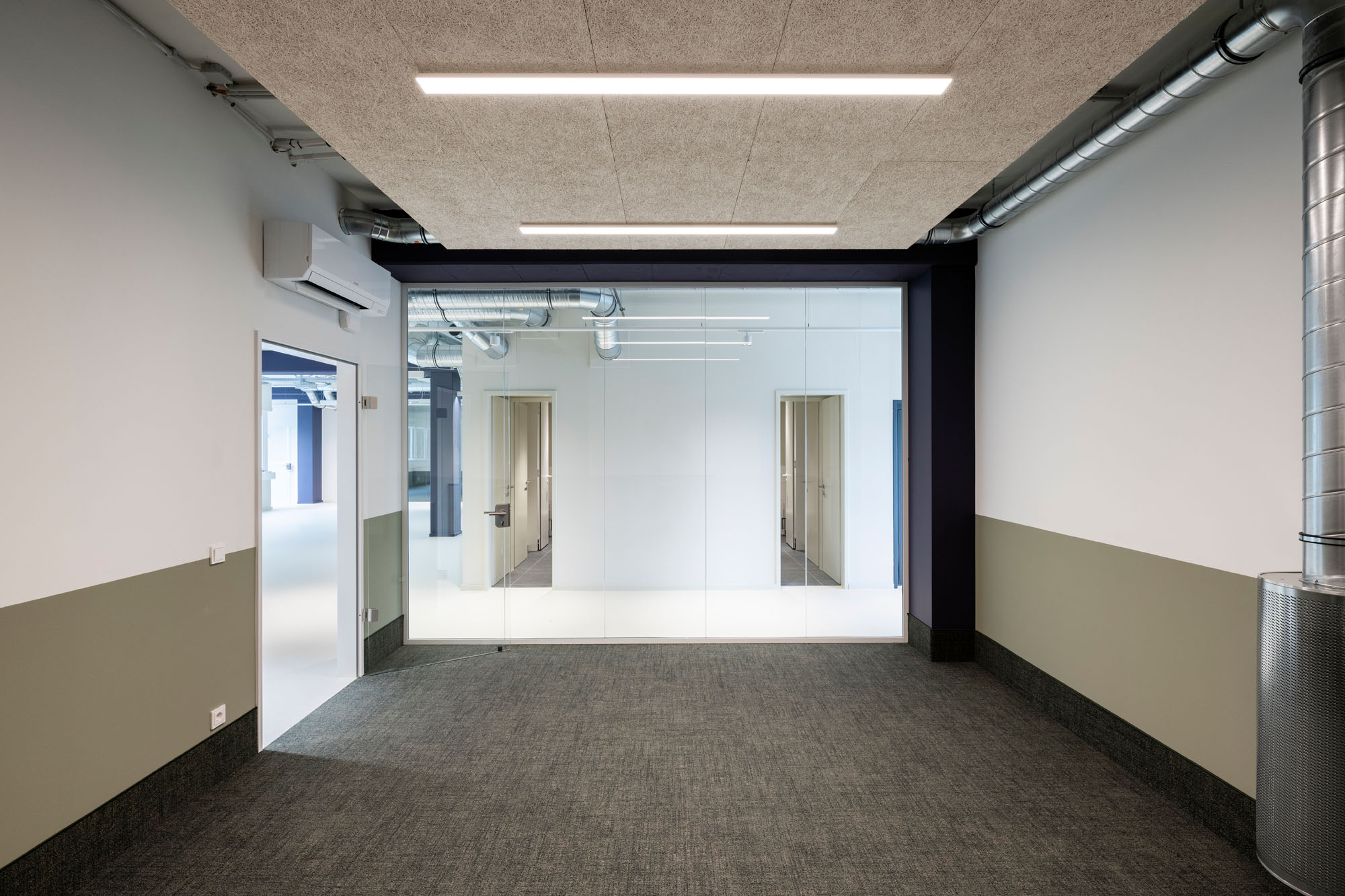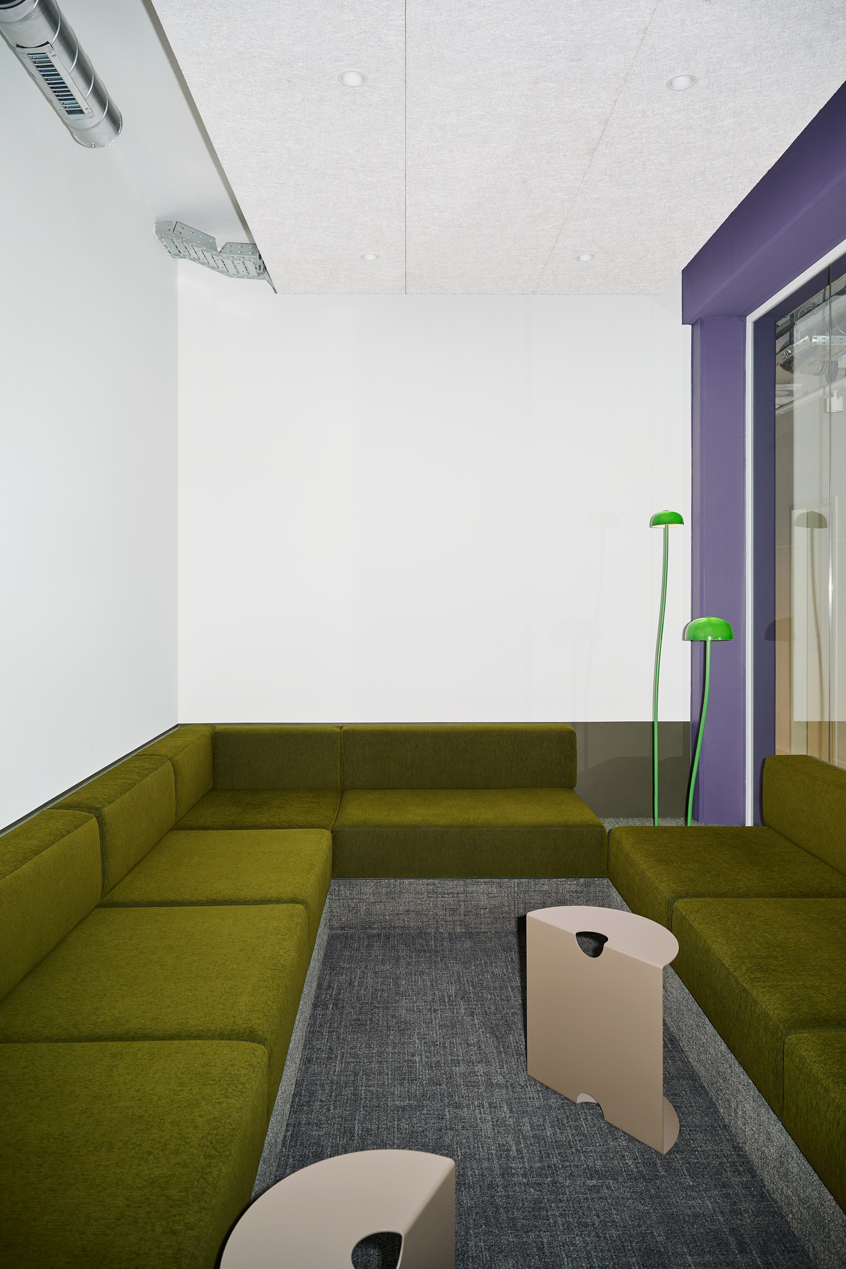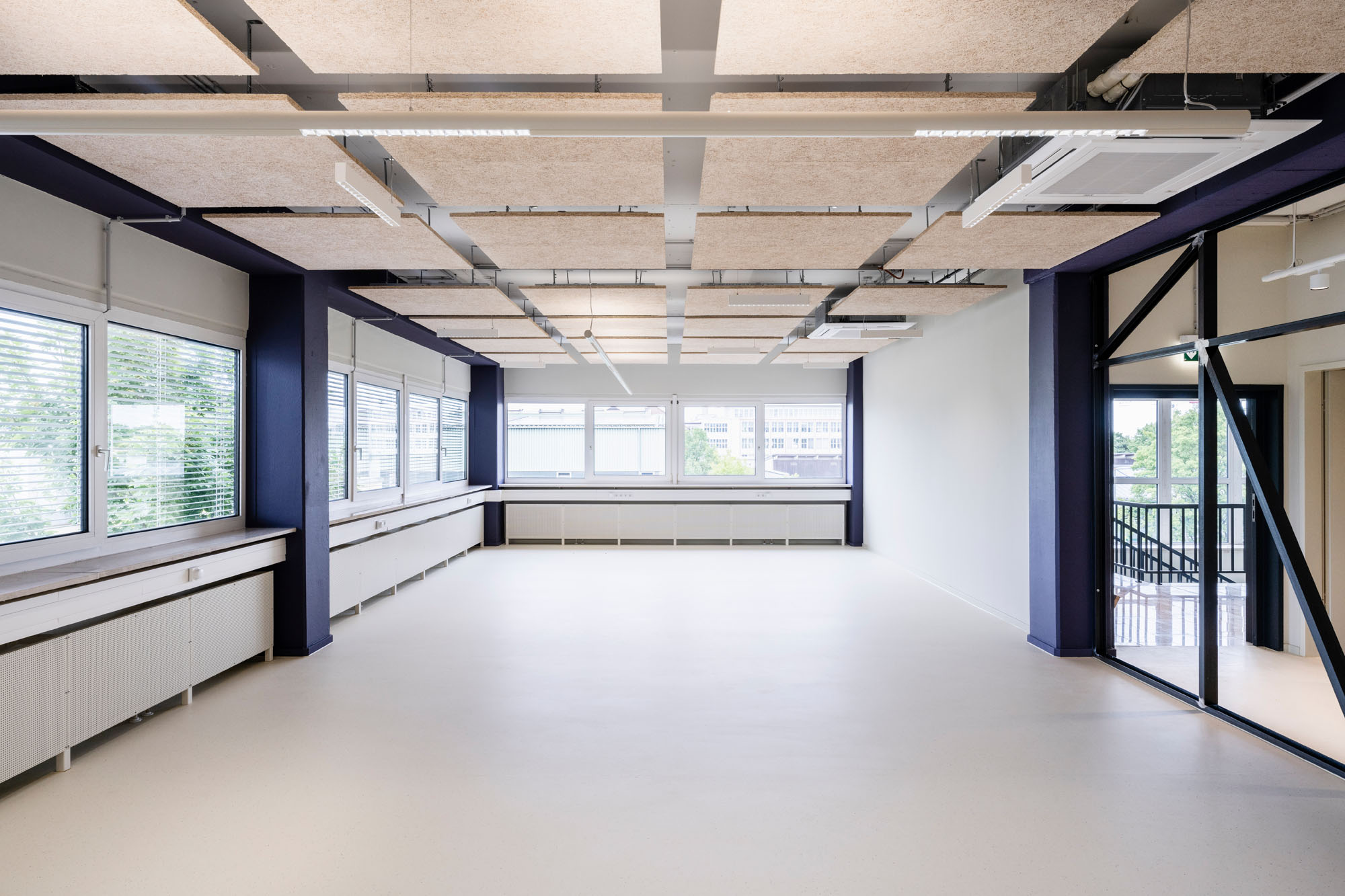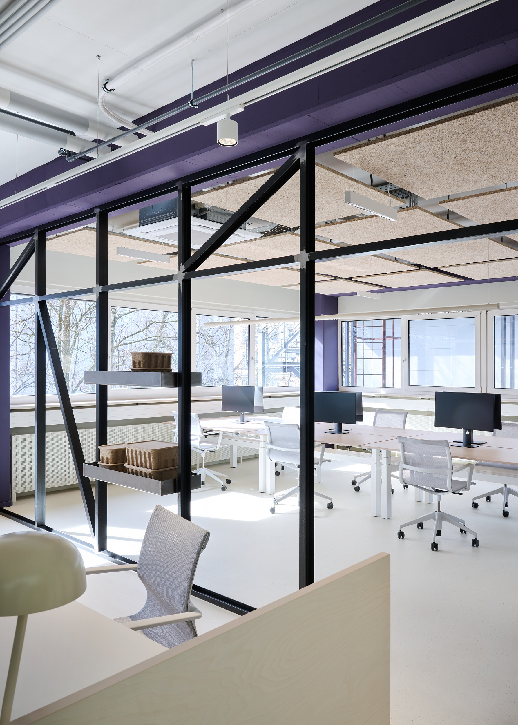 Stahl-Trennelemente strukturieren den Großraum und gliedern ihn in sinnvolle Einheiten. Open Space mit fließenden Übergängen zu den verschiedenen Arbeitsbereichen. Verschieden große und gestaltete Projekt- und Besprechungsräume. Rückzugsbereiche für konzentriertes Arbeiten – Think Tanks. Kreativ gestaltete Loungebereiche mit flexiblem Mobiliar. Große Fensterflächen und ein innenliegender Lichthof sorgen für viel Licht und angenehmen Arbeitsatmosphäre.
