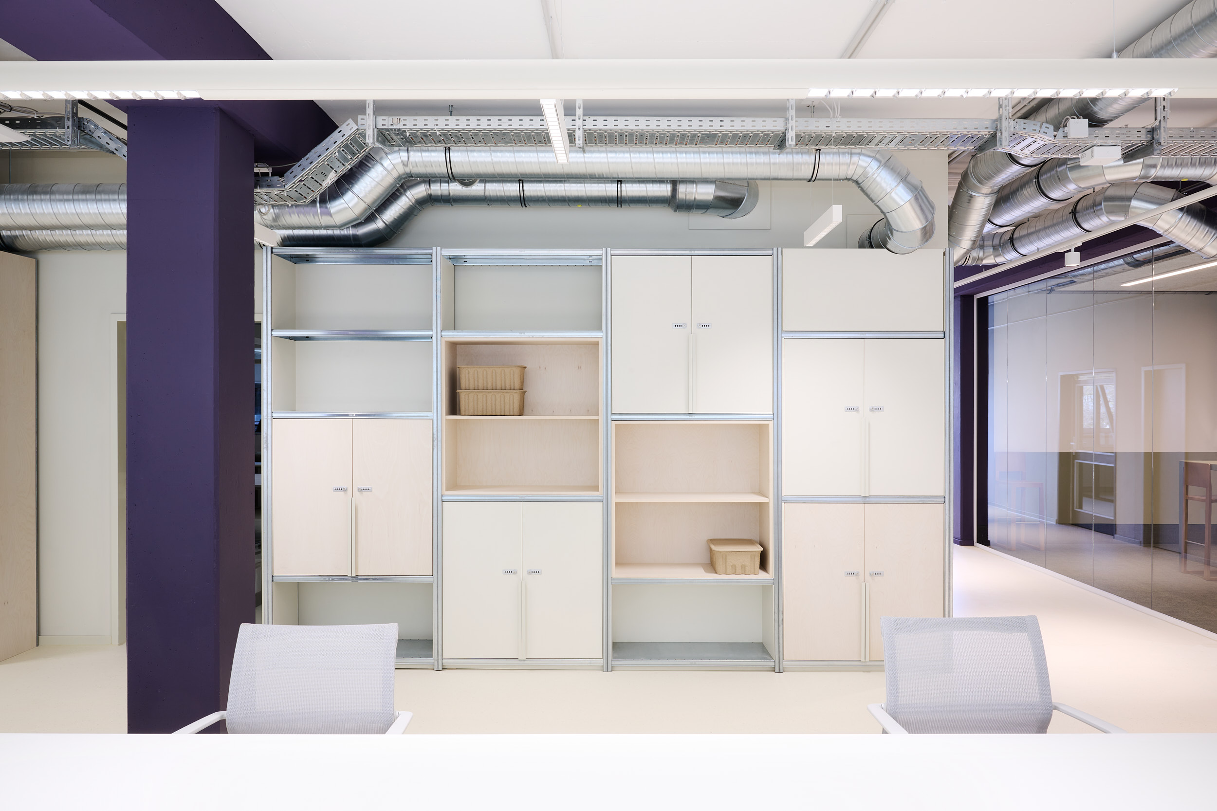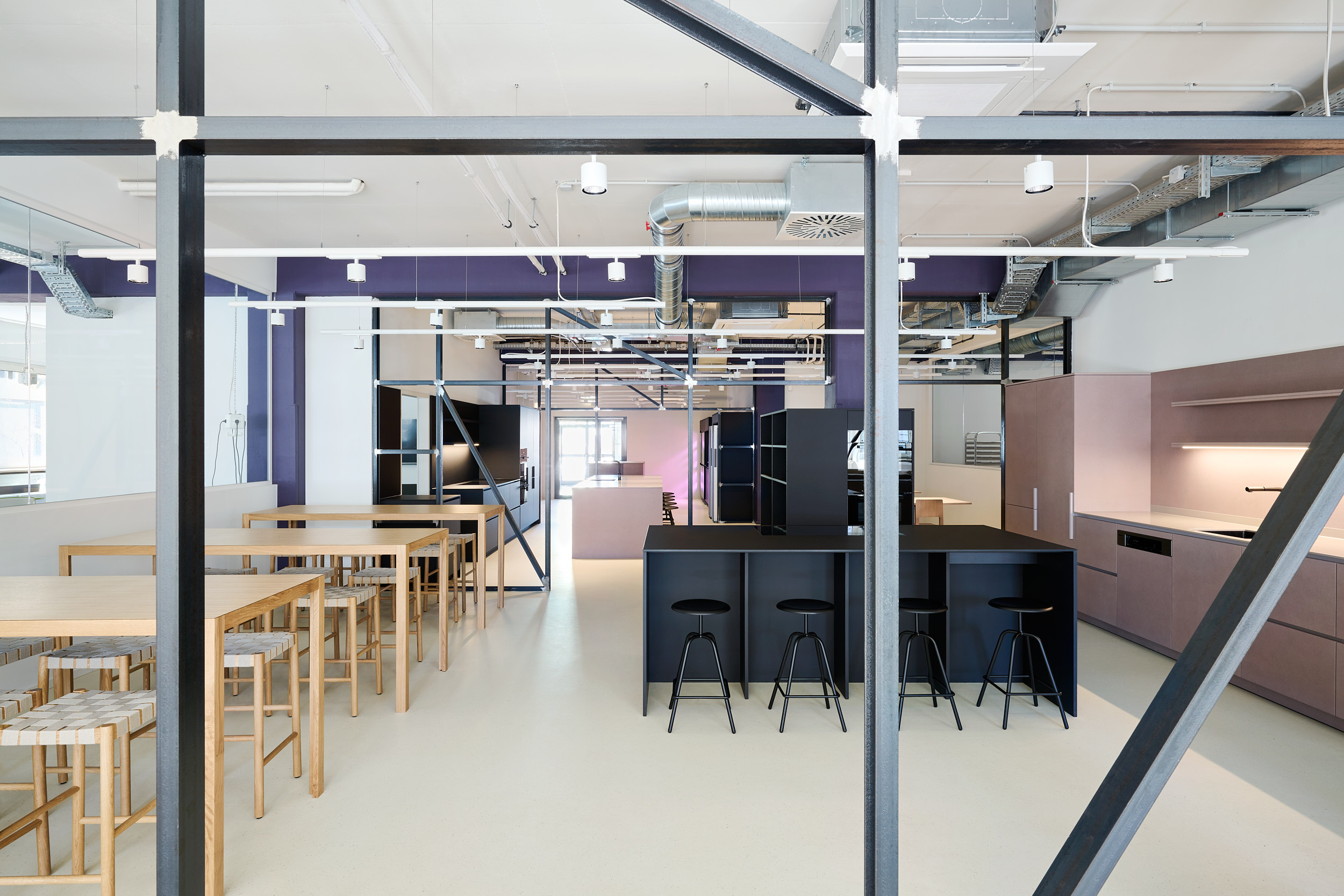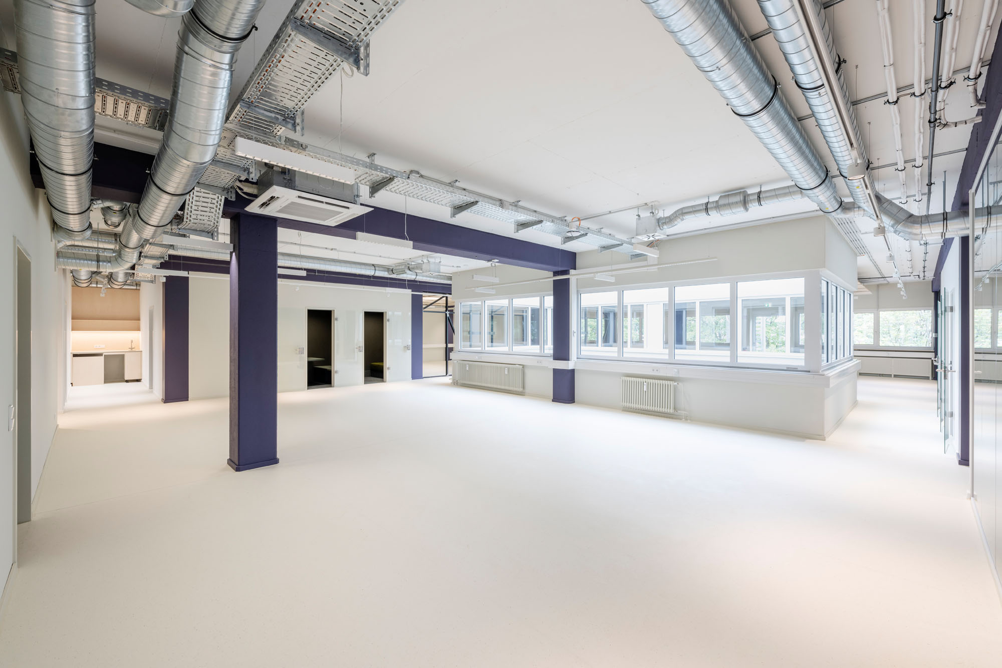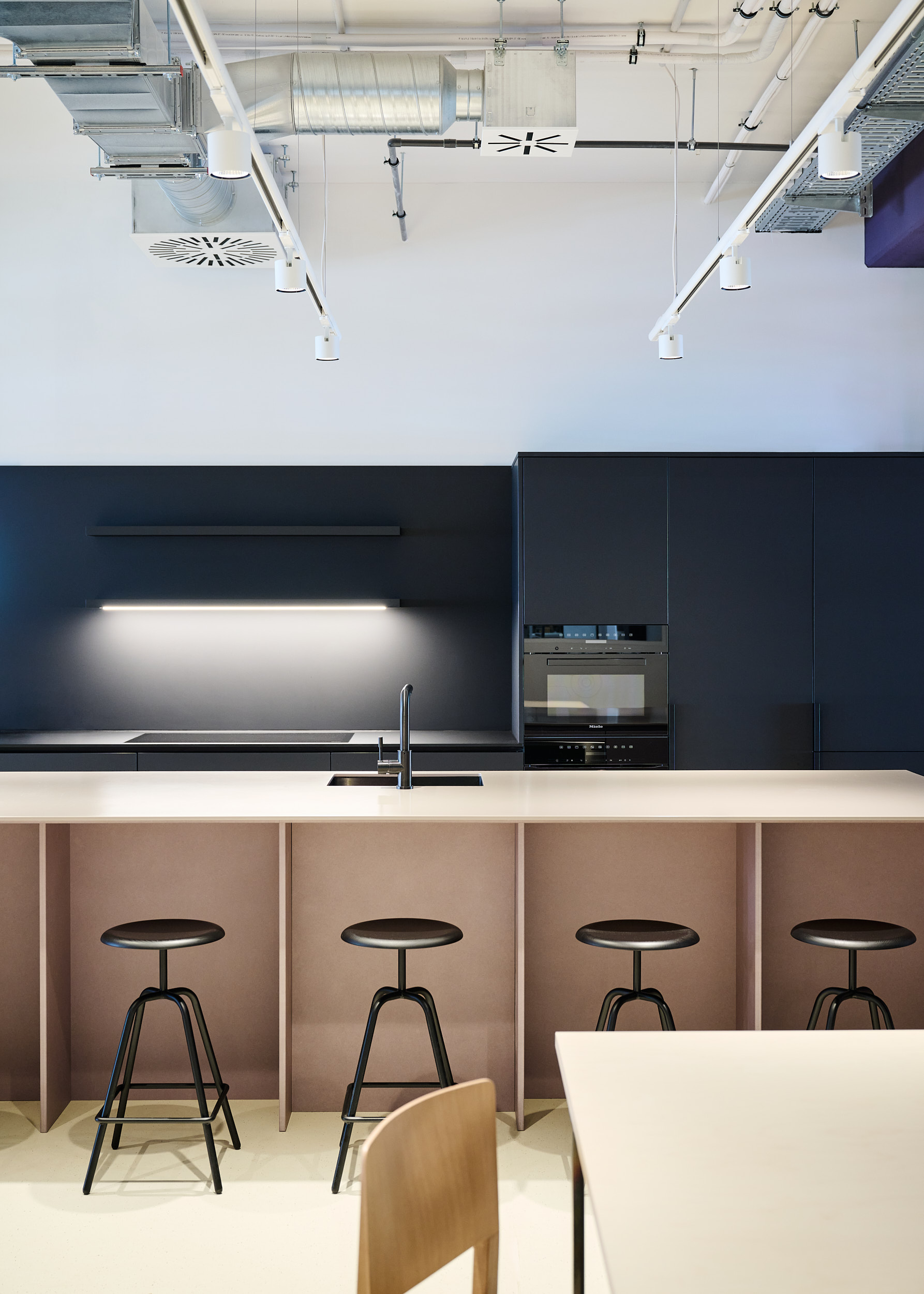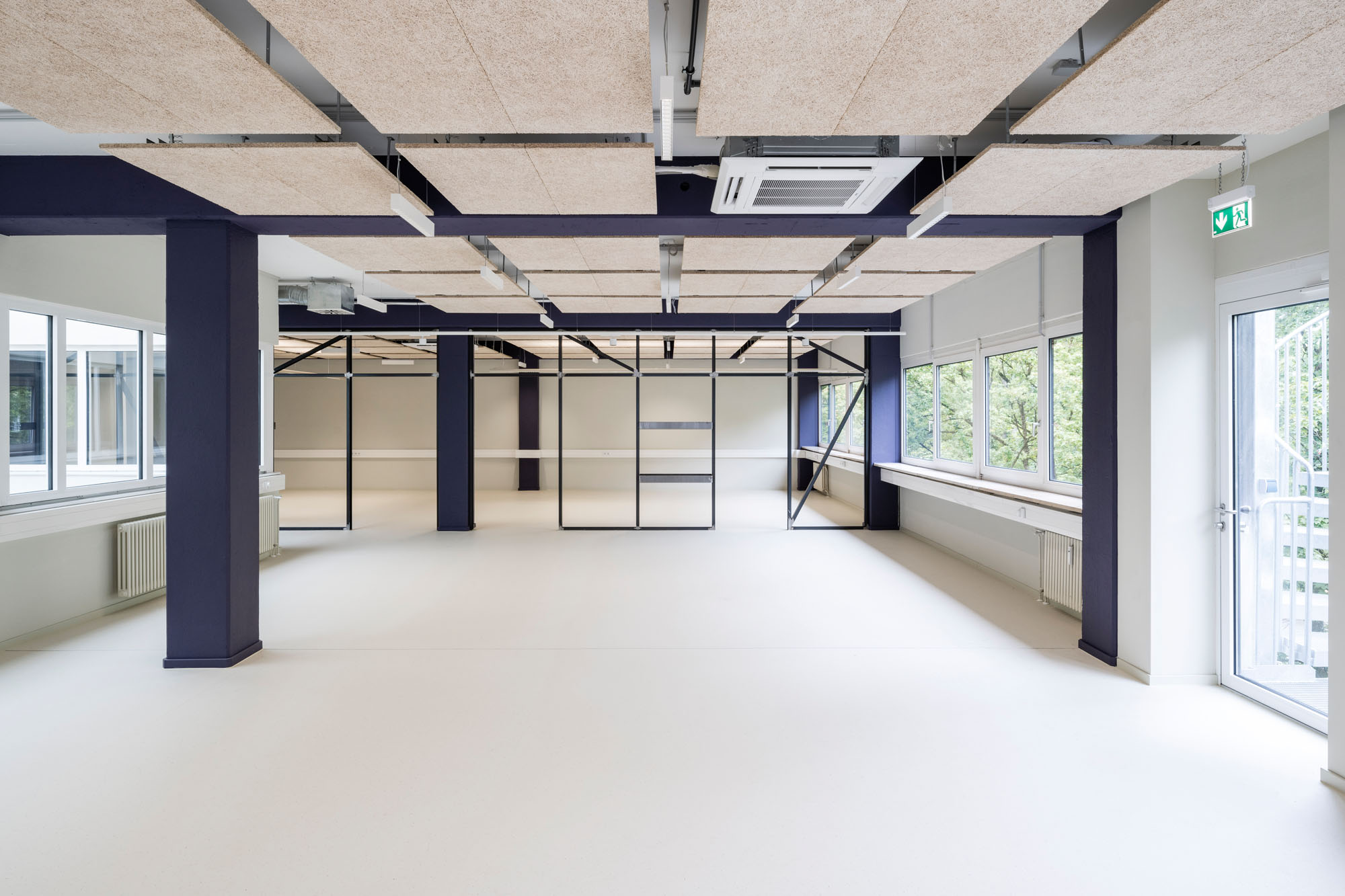 Stahl-Trennelemente strukturieren den Großraum und gliedern ihn in sinnvolle Einheiten. Open Space mit fließenden Übergängen zu den verschiedenen Arbeitsbereichen. Verschieden große und gestaltete Projekt- und Besprechungsräume. Rückzugsbereiche für konzentriertes Arbeiten – Think Tanks. Kreativ gestaltete Loungebereiche mit flexiblem Mobiliar. Große Fensterflächen und ein innenliegender Lichthof sorgen für viel Licht und angenehmen Arbeitsatmosphäre.