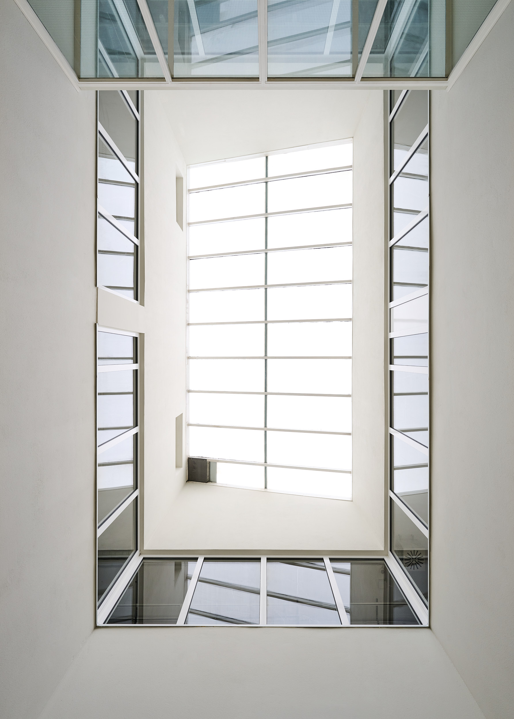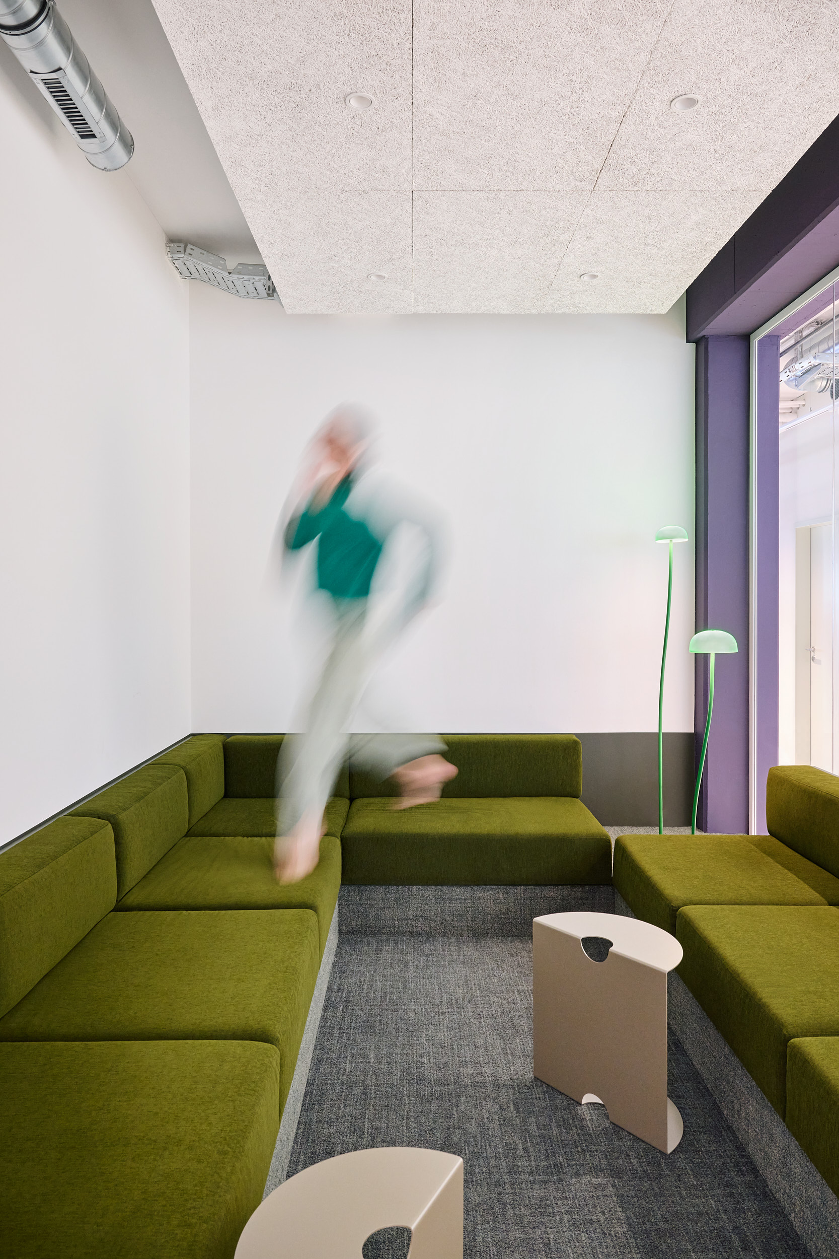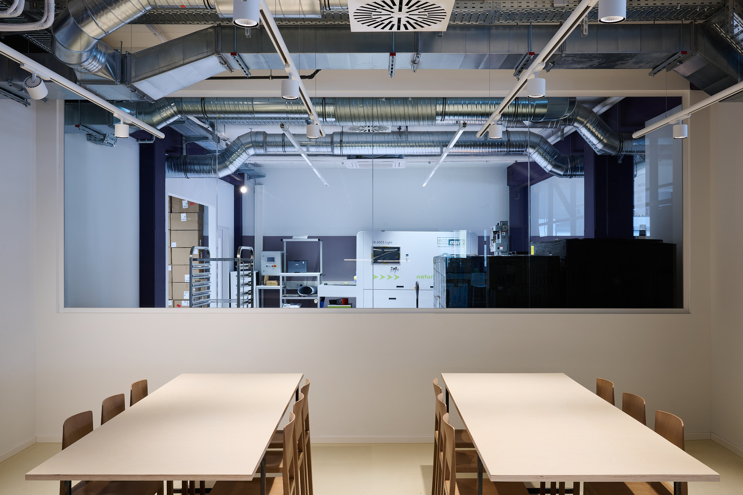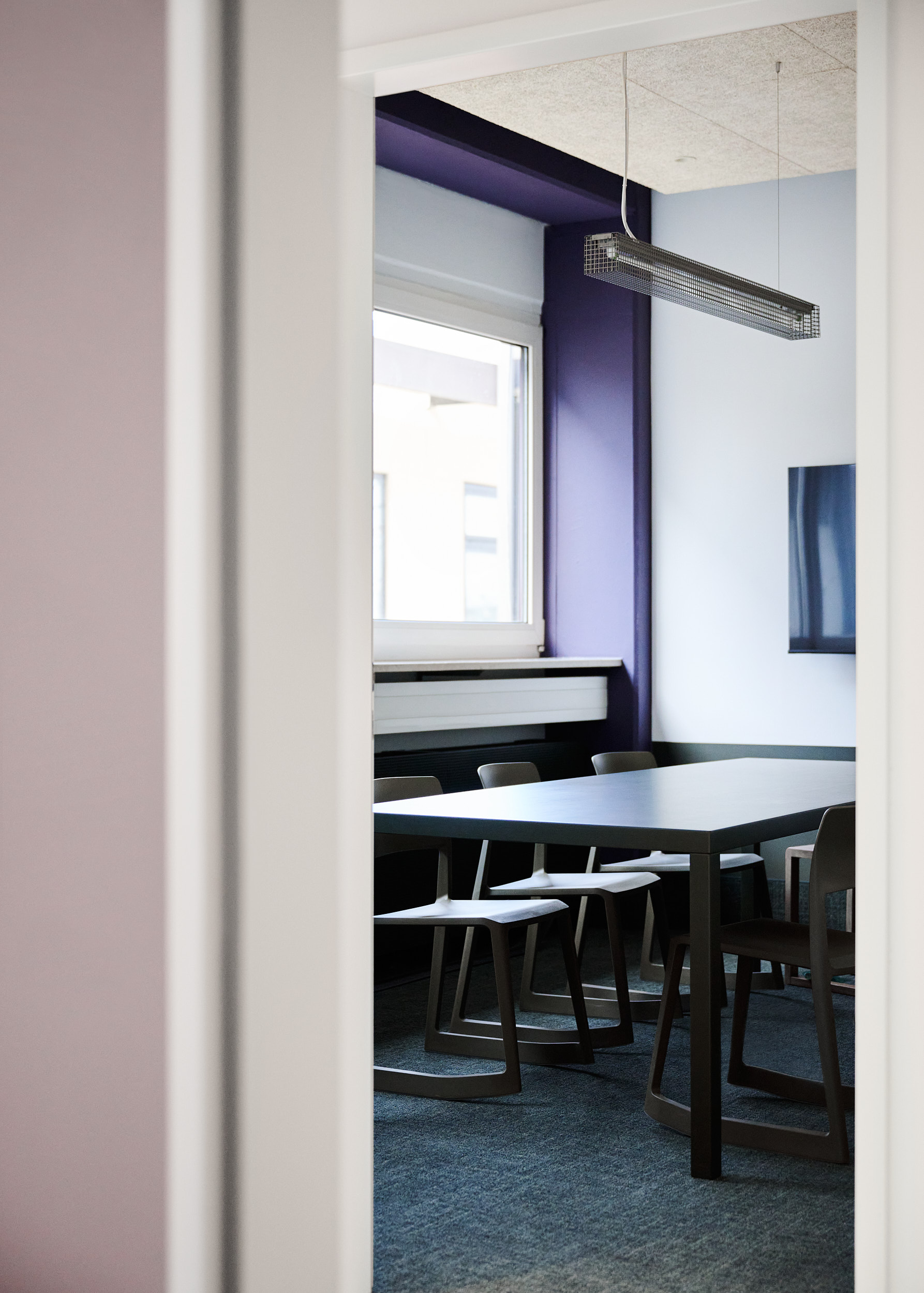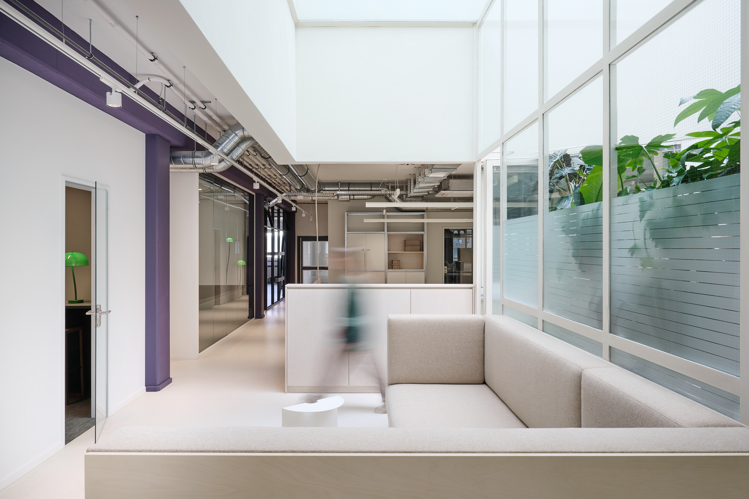 Stahl-Trennelemente strukturieren den Großraum und gliedern ihn in sinnvolle Einheiten. Open Space mit fließenden Übergängen zu den verschiedenen Arbeitsbereichen. Verschieden große und gestaltete Projekt- und Besprechungsräume. Rückzugsbereiche für konzentriertes Arbeiten – Think Tanks. Kreativ gestaltete Loungebereiche mit flexiblem Mobiliar. Große Fensterflächen und ein innenliegender Lichthof sorgen für viel Licht und angenehmen Arbeitsatmosphäre.