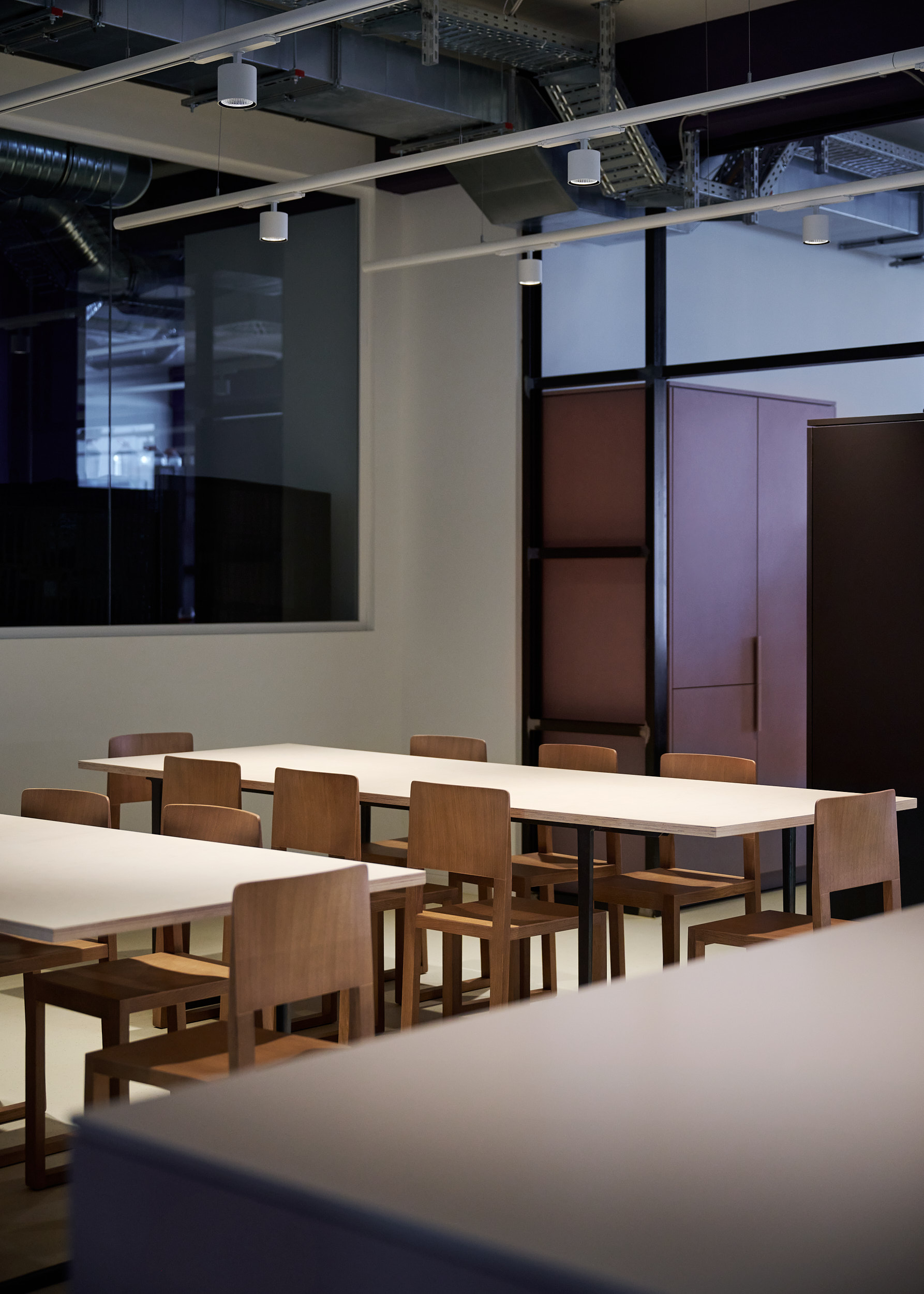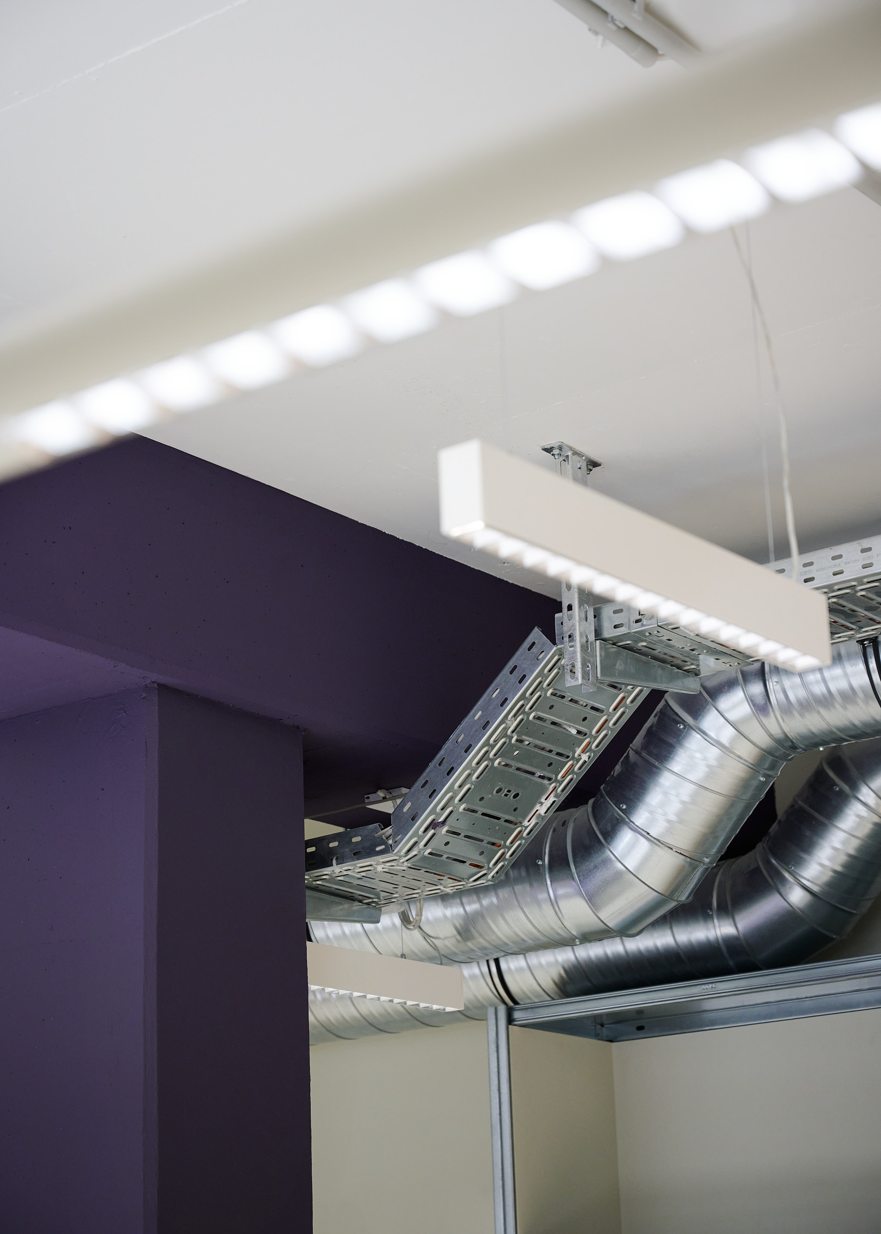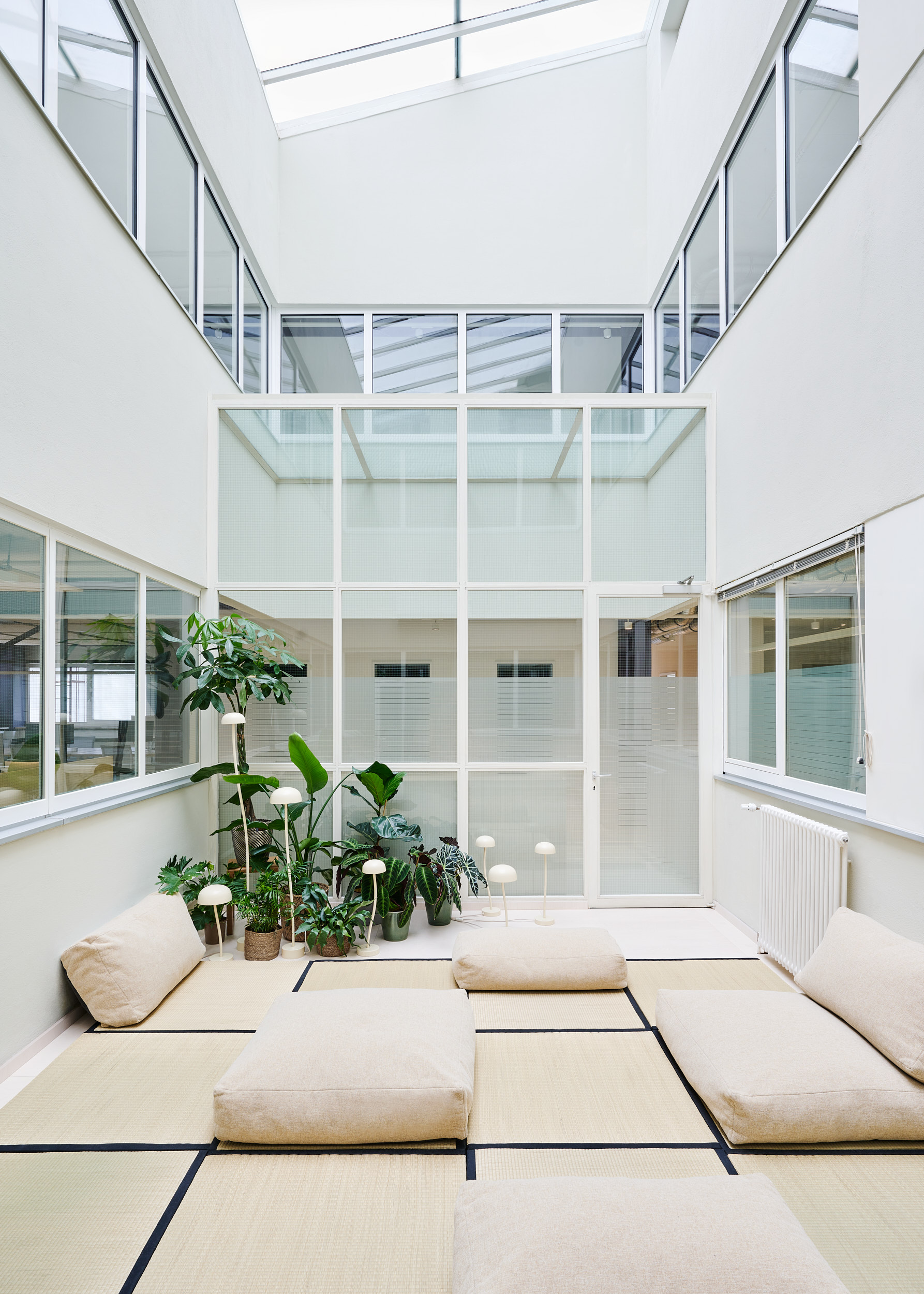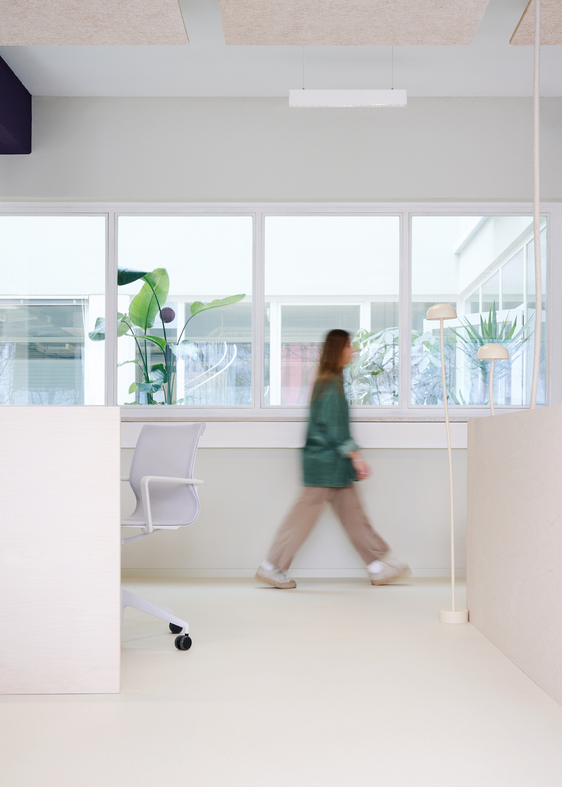 Stahl-Trennelemente strukturieren den Großraum und gliedern ihn in sinnvolle Einheiten. Open Space mit fließenden Übergängen zu den verschiedenen Arbeitsbereichen. Verschieden große und gestaltete Projekt- und Besprechungsräume. Rückzugsbereiche für konzentriertes Arbeiten – Think Tanks. Kreativ gestaltete Loungebereiche mit flexiblem Mobiliar. Große Fensterflächen und ein innenliegender Lichthof sorgen für viel Licht und angenehmen Arbeitsatmosphäre.