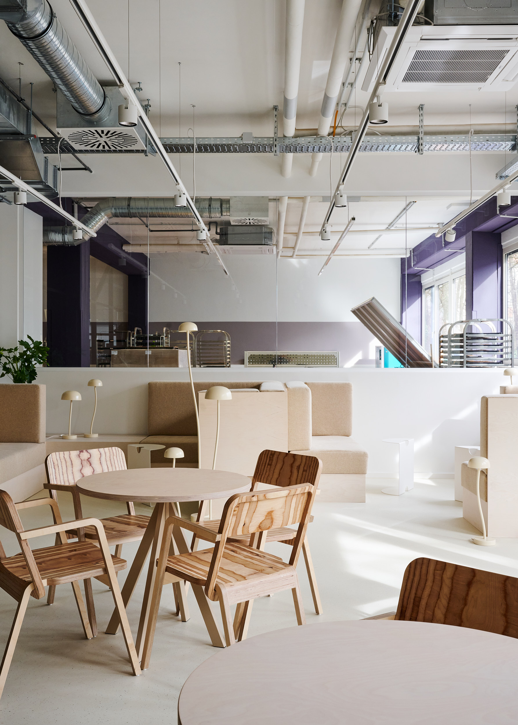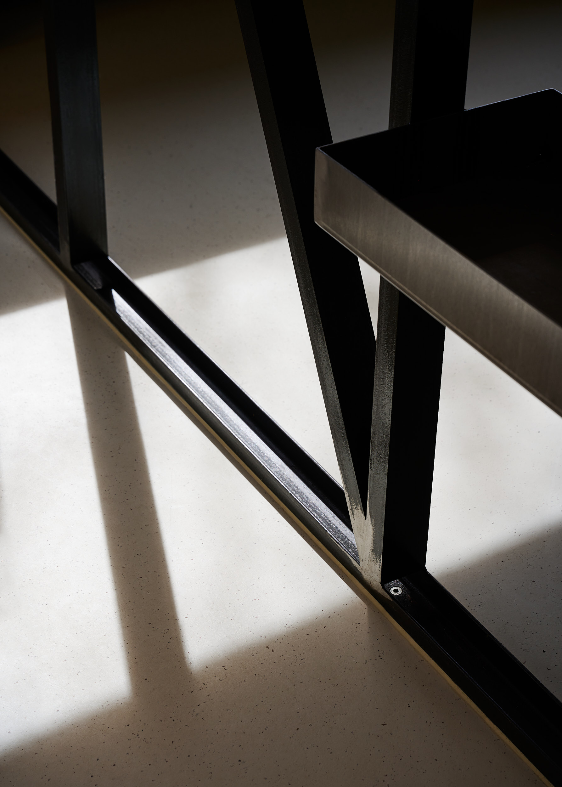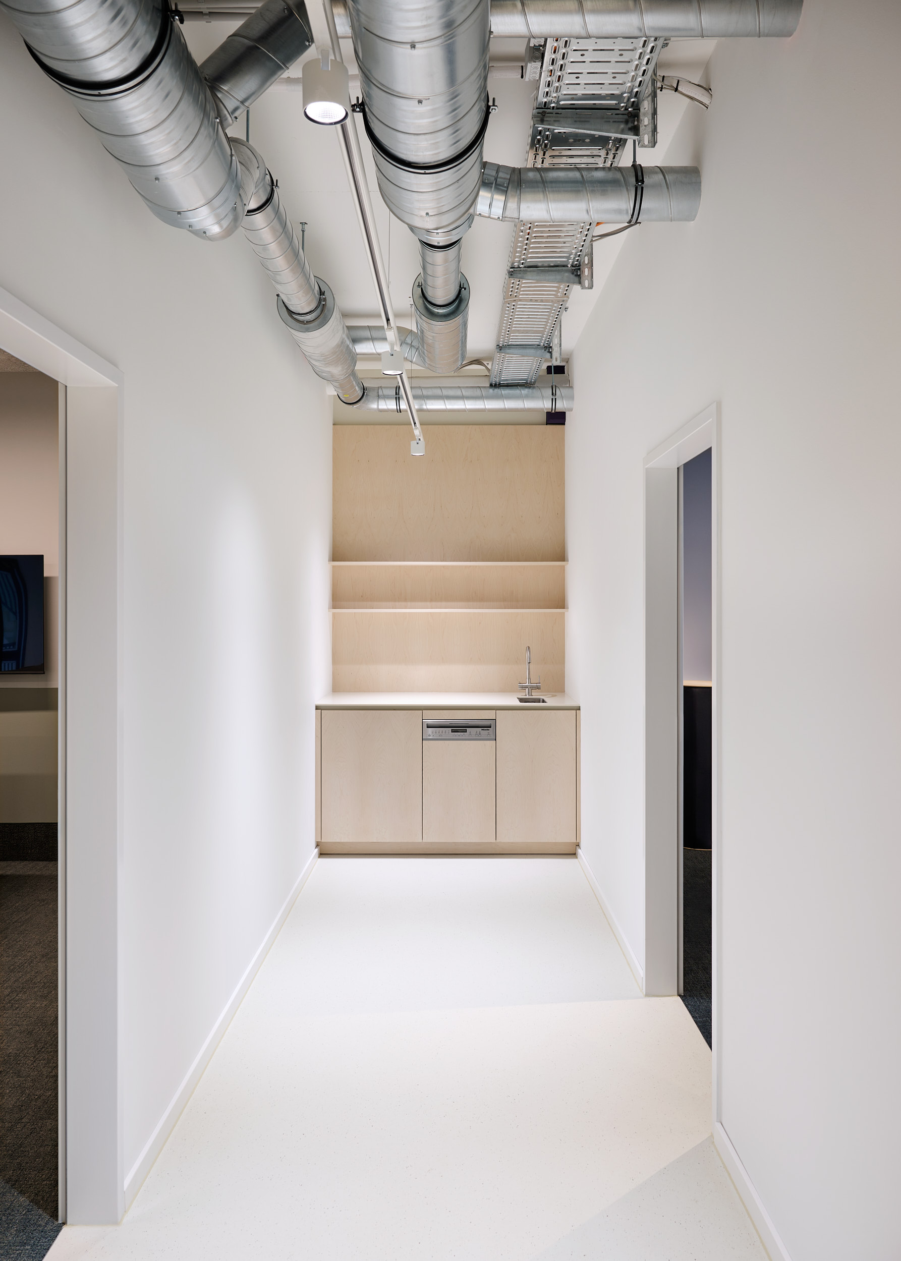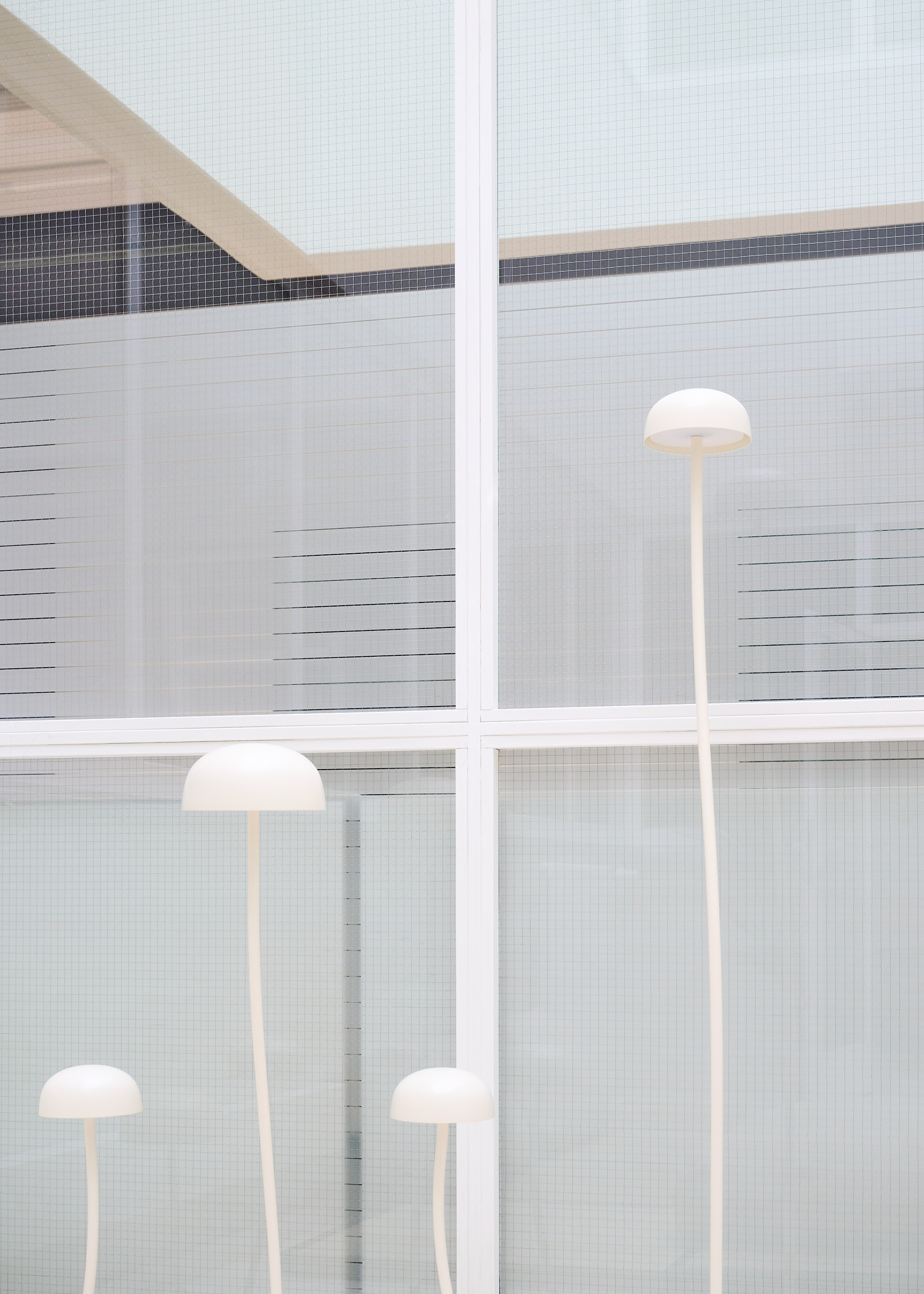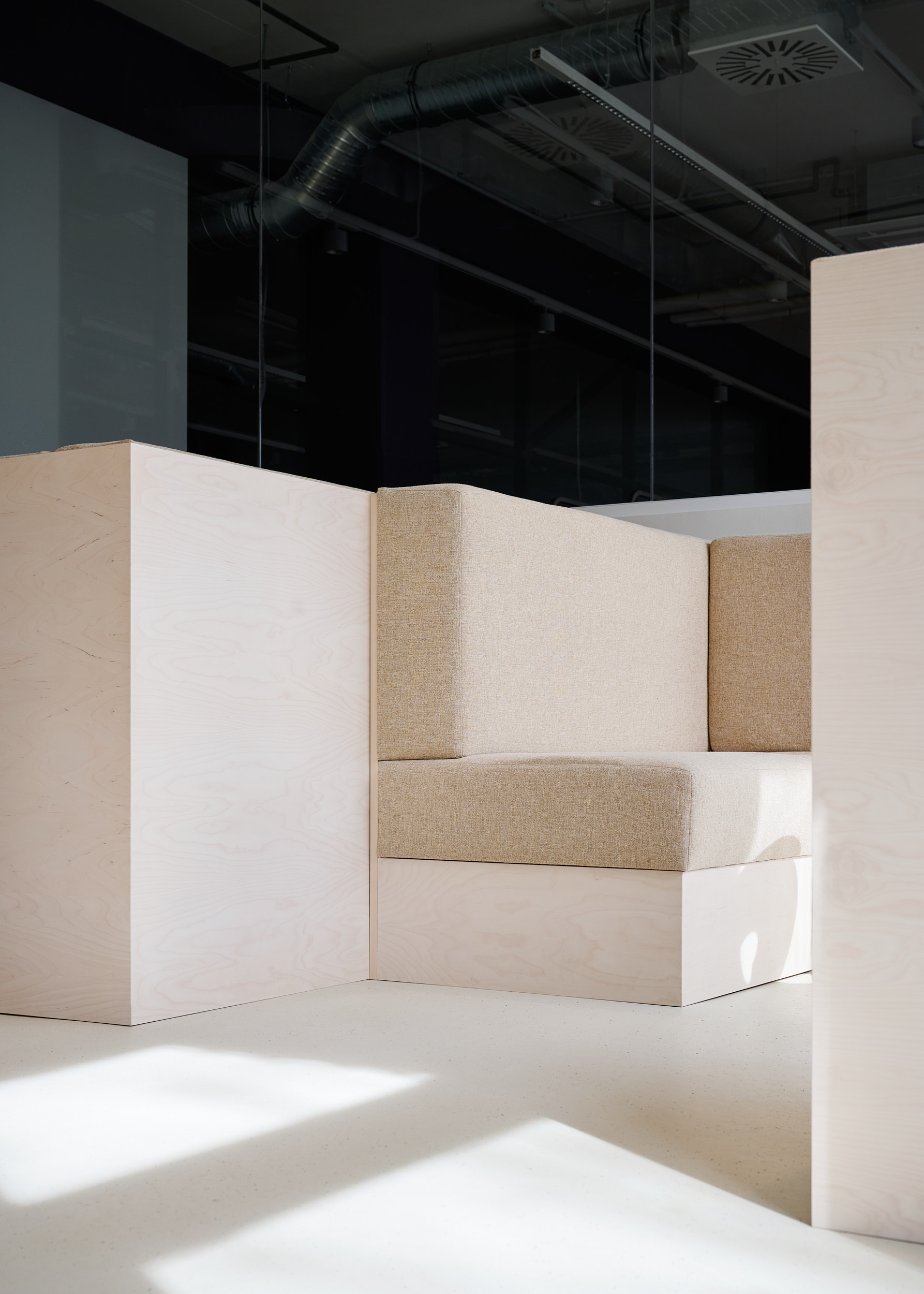 Stahl-Trennelemente strukturieren den Großraum und gliedern ihn in sinnvolle Einheiten. Open Space mit fließenden Übergängen zu den verschiedenen Arbeitsbereichen. Verschieden große und gestaltete Projekt- und Besprechungsräume. Rückzugsbereiche für konzentriertes Arbeiten – Think Tanks. Kreativ gestaltete Loungebereiche mit flexiblem Mobiliar. Große Fensterflächen und ein innenliegender Lichthof sorgen für viel Licht und angenehmen Arbeitsatmosphäre.