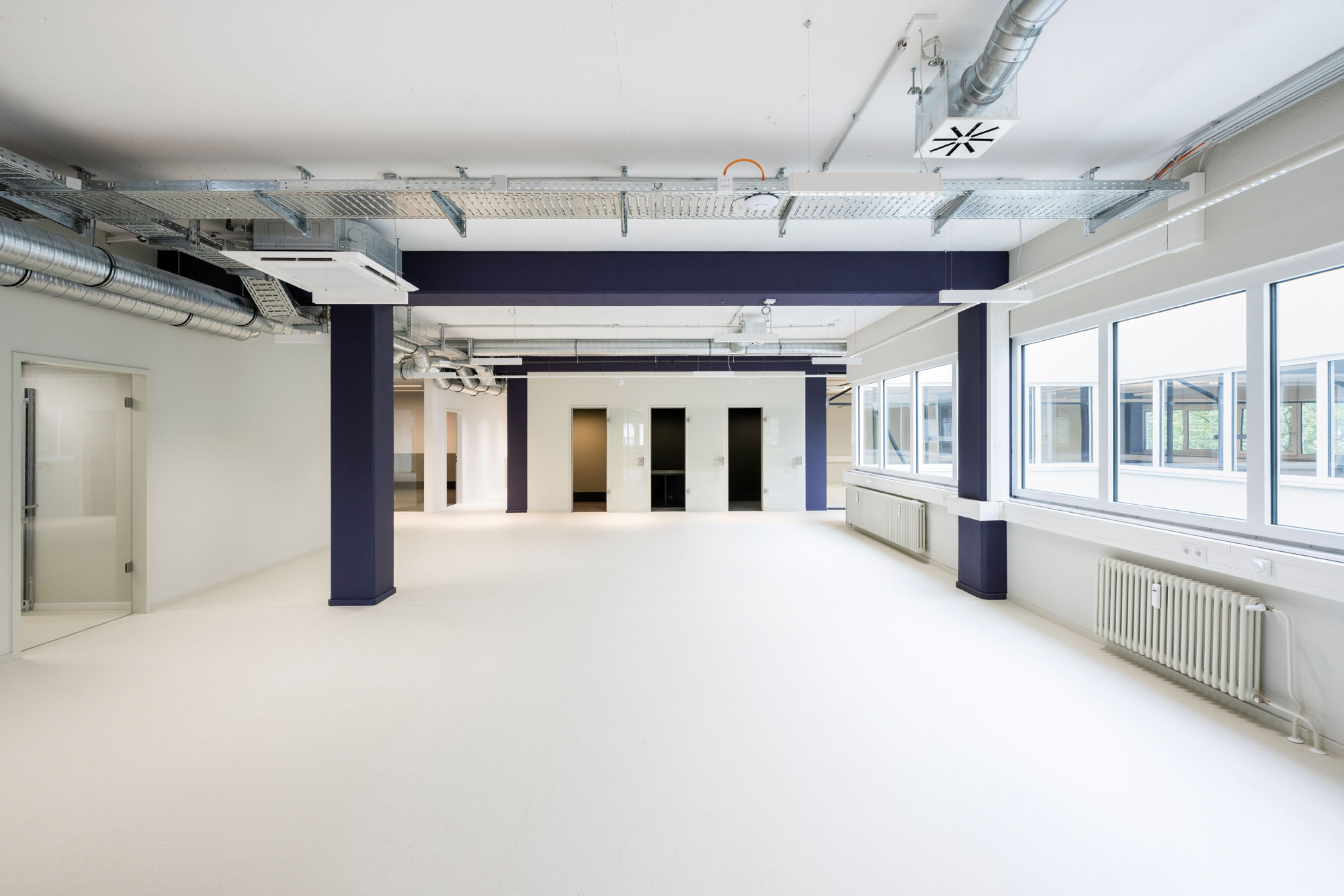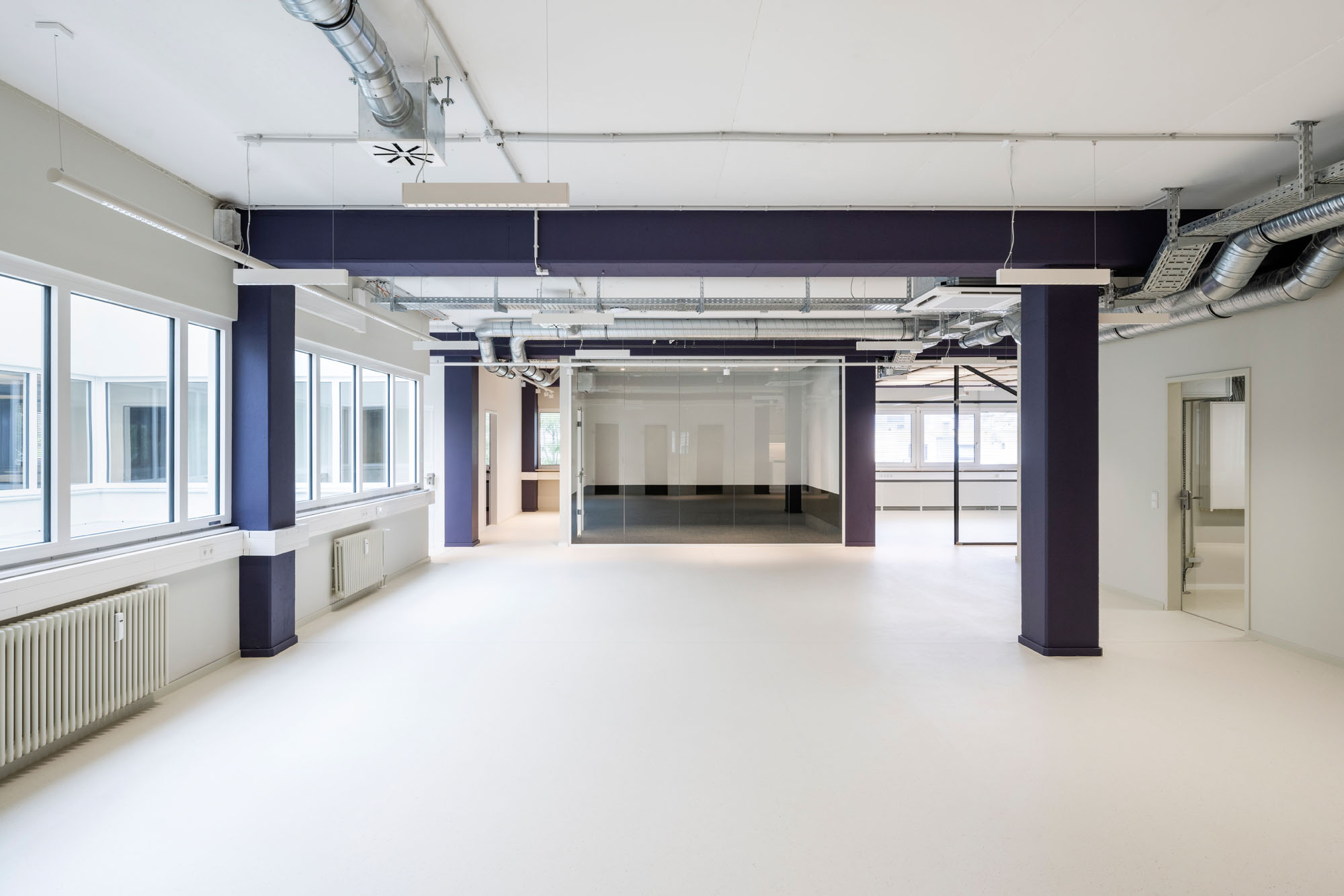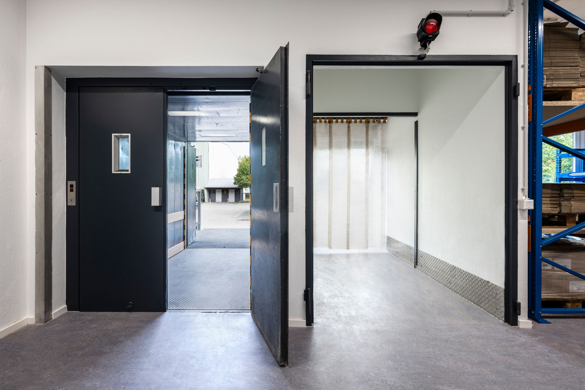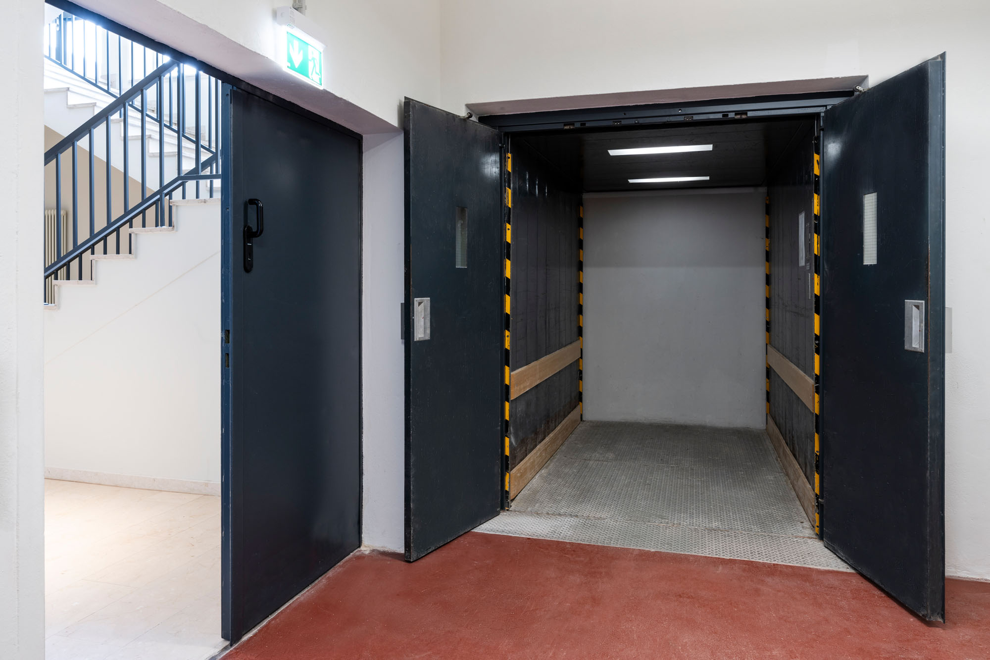 Das Untergeschoss der ALTEN DRUCKEREI MÜNCHEN ist ausgestattet mit einer Vielzahl an praktischer Details. Die Laderampe gleich neben dem Haupteingang ermöglicht einfache Be- und Entladung auch von schweren und unhandlichen Lieferungen. Direkt angeschlossen finden sich die großzügigen Lager-, Produktions- und Abstellflächen mit leicht zu reinigendem Bodenflächen. Ein Lastenaufzug ermöglicht den Transport von schweren oder sperrigen Gegenständen vom Untergeschoss in jede weitere Etage.