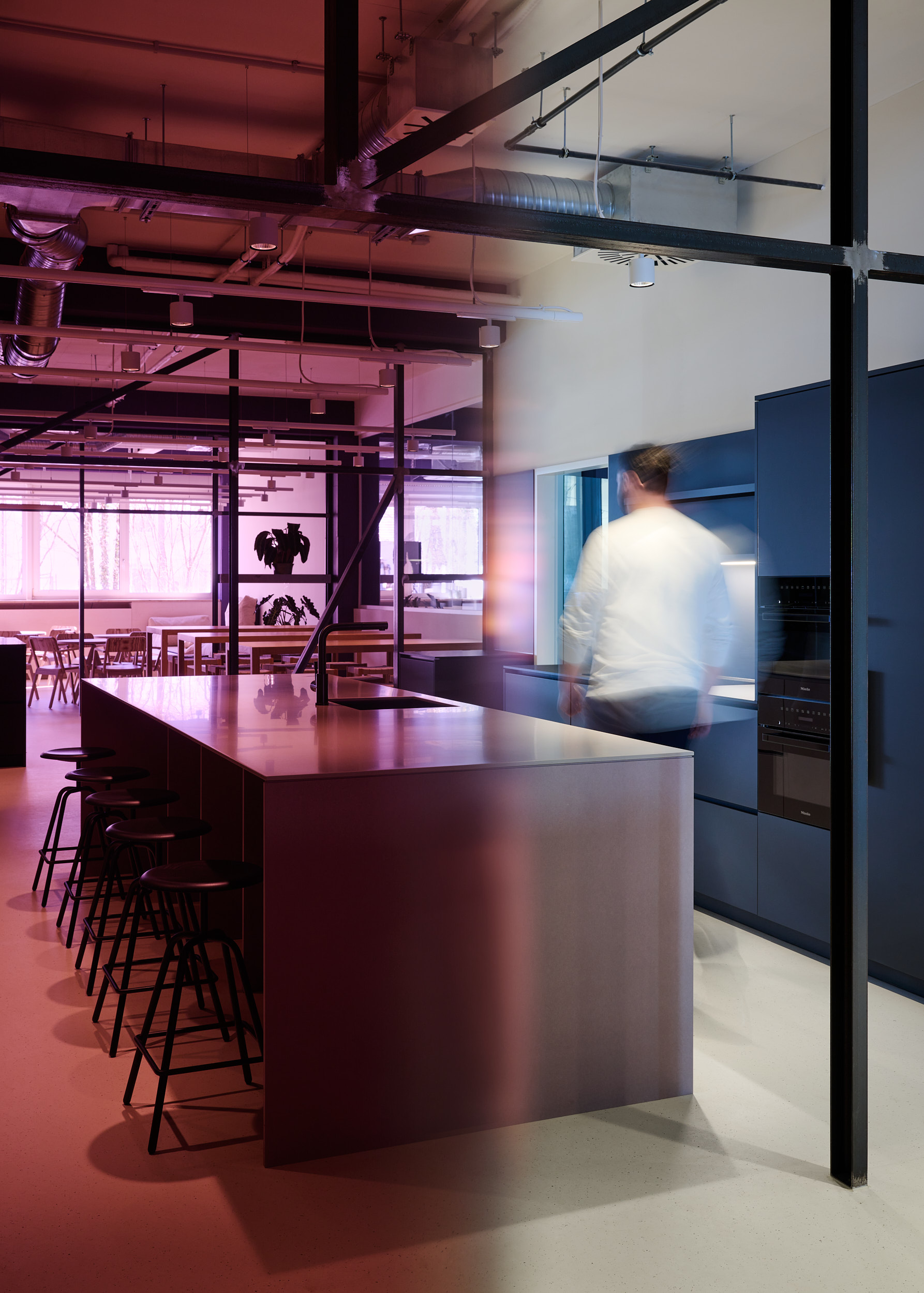 Das Erdgeschoss der ALTEN DRUCKEREI MÜNCHEN ist der zentrale Mittelpunkt der gesamten Immobilie. Herzstück der Etage ist die voll ausgestattete und großzügige Küche mit anliegenden Bistrobereich. Wer es intimer und relaxter mag, kann sich in einen der Lounge Areas gemütlich machen und zur Ruhe kommen. Große Fenster durchfluten die Räume am Tag mit Licht und am Abend sorgt eine abgestimmte Beleuchtung für stylische Ambiente. Raum für Gespräche, Beisammensein, Netzwerken, entspannen, treffen, genießen, entdecken, präsentieren, zeigen und vieles mehr.